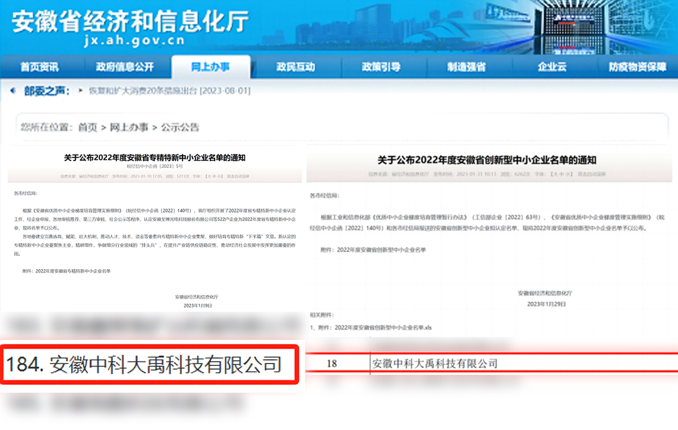 入選2022年度安徽省專精特新中小企業 入選2022年度安徽省創(chuàng)新型中小企業名單
